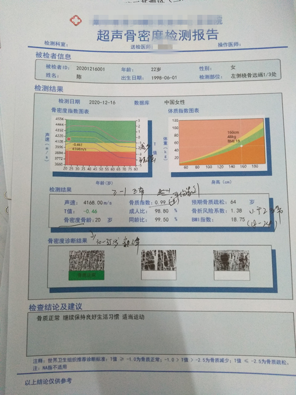 骨密度既然能檢測,當(dāng)然也能分高低,對于孩子來說,常見的就是骨密度低,因?yàn)樯L發(fā)育需求,骨骼中的鈣質(zhì)會不斷損耗,因此導(dǎo)致青少年易骨密度低。如果孩子檢測出骨密度低,也不必太擔(dān)心,只需要及時(shí)補(bǔ)充鈣鋅等骨骼中缺少的各類微量元素,再加上適當(dāng)運(yùn)動(dòng)促進(jìn)微量元素吸收,慢慢就能彌補(bǔ)骨骼中缺乏礦物質(zhì),恢復(fù)正常,繼續(xù)長高高。
