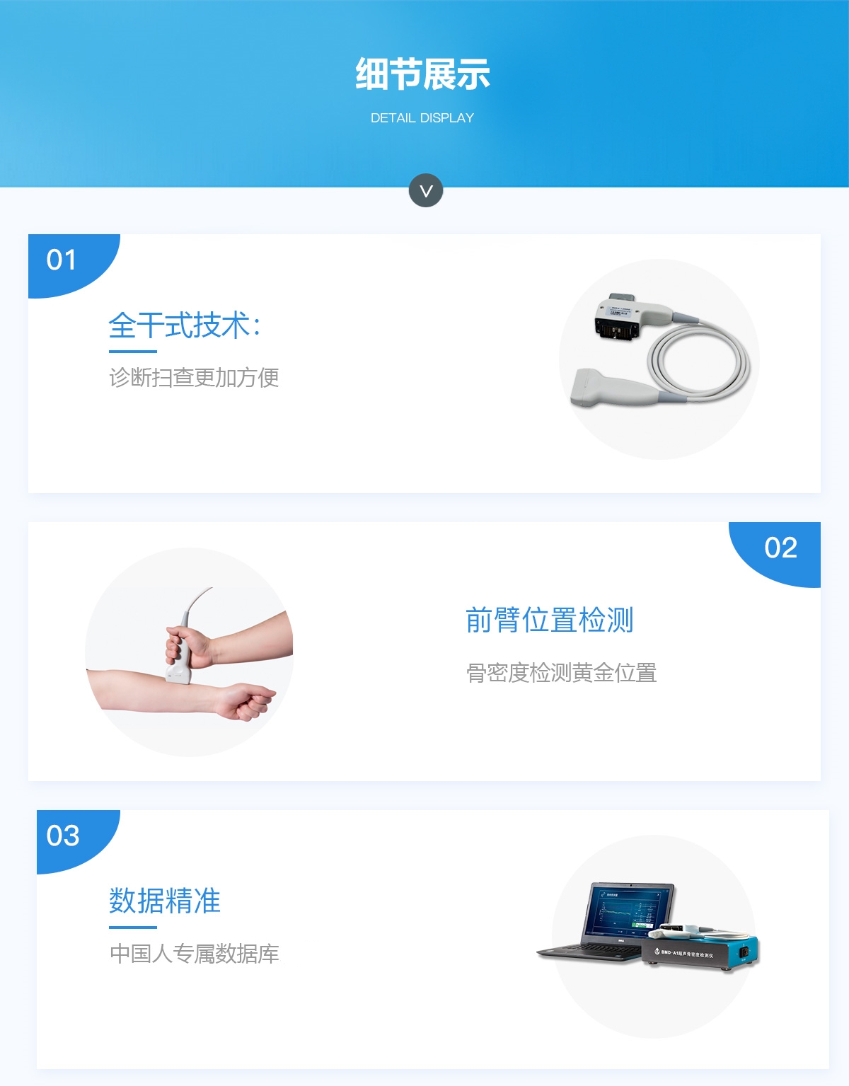 產品在醫生指導下,適用于受試者橈骨、脛骨骨密度或骨強度進行檢驗。